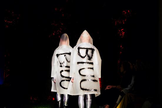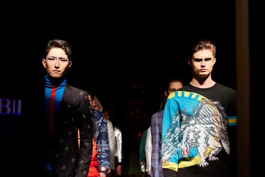 圣界SAINT COLLECTION 、地界VANGUARD COLLECTION以及魔界DEVILDOM,魔幻风格加入了太空质感元素,极具装饰性又兼具实用性,现场配以迷幻电音和酷炫的声光电特效,一场时尚大秀让人如同置身宇宙,接触外星生命,创造出了全新的时装结构与创作点。