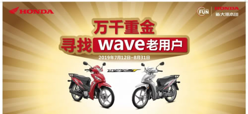 7月12日,新大洲本田“万千重金寻找WAVE老用户”活动火热开启,本活动旨在寻找到WAVE最初的那群人,一起分享燃情的岁月,一起回忆当初的美好。