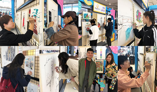 两侧悬挂的绘画原稿,各式迷人的风景画,正如刚刚过去的十一小长假在旅途中欣赏到的风景,顾客朋友们一起交流涂鸦创作,体验MALL里艺术的乐趣。在画家的指导下,众多顾客拿起画笔,选择“心仪”原稿,一丝不苟的进行创作。无论是专注的绘画者,还是只远观欣赏的“品鉴者”都以自己的方式享乐其中。一幅幅原本极简勾勒的画作瞬间变得色彩斑斓,并赋予了新的故事。