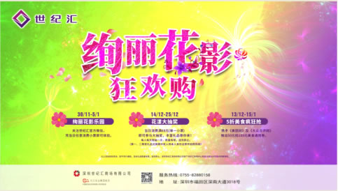 关注世纪汇官方微信,凭当日世纪汇任意小票即可体验绚丽花影乐园。