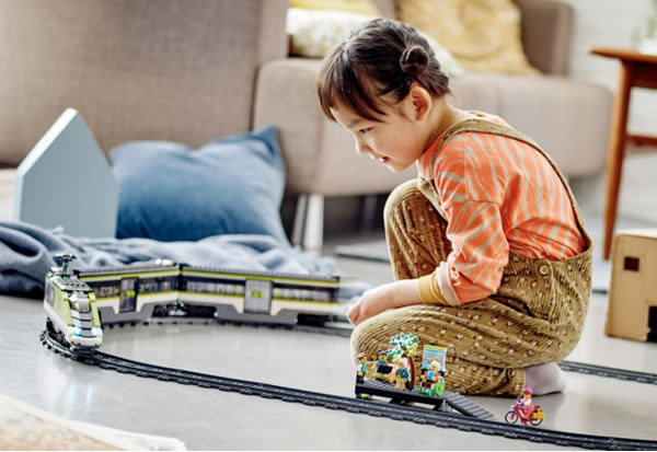 城市组一直深受孩子们的喜爱。全新上市的 60337 特快客运列车 套装采用了孩子们热爱的火车元素,带来升级的玩乐体验。此款玩具套装包含一台可亮灯的火车头牵引两列客车,铁轨的设计可与城市组其他套装进行组合玩乐,并配有 Power Up 蓝牙遥控装饰,可远程进行操控车速和火车发出的声音。高铁列车跑起来,一起驶入奇思妙想的乐高世界吧!