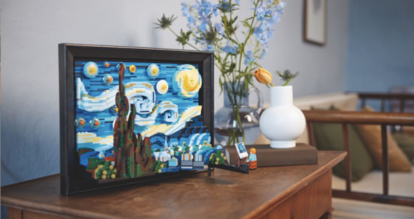 乐高集团推出了 21333 乐高IDEAS 星月夜 3D 套装,以乐高积木的形式重现了文森特·梵高 1889 年的著名画作,高度还原了梵高那令人惊叹的笔触和色彩选择,并向印象派绘画的大师致敬。闪烁的星星,迷人的月亮与月夜里宁静的普罗旺斯村庄,整幅作品宁静优雅,充满艺术气息,是不可多得的家居装饰佳作。