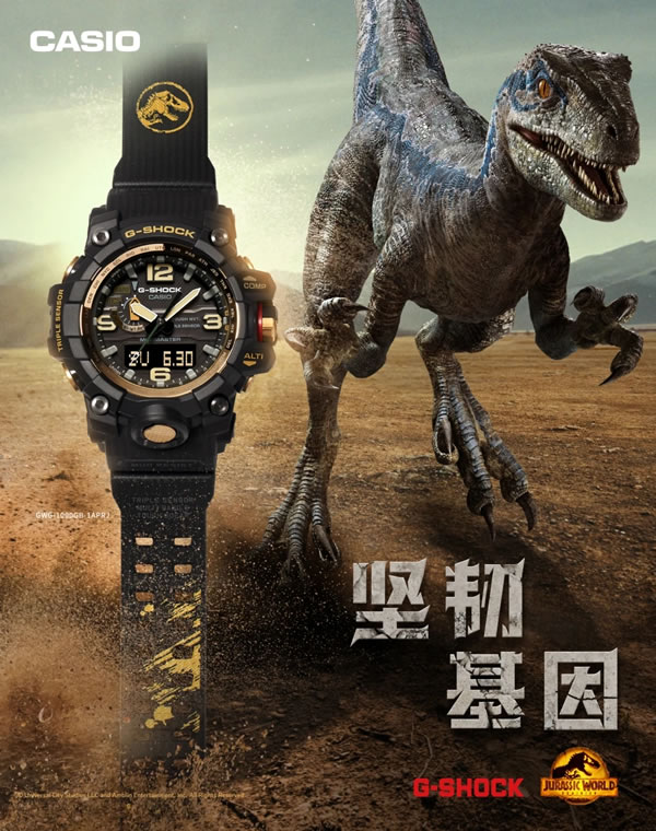 1993年上映的侏罗纪公园让恐龙回到了新一代人的视野中。在过去将近30年的时间里,侏罗纪公园和侏罗纪世界系列电影为观众带来惊奇和震撼。侏罗纪世界系列电影将6500万年前的震撼场景在我们面前展开,我们感受着恐龙的凶猛与强悍,见证着它们傲立严酷环境之巅,称霸陆地。而今,这片历经亿万年变迁的大地迎来了新的征服者,G-SHOCK Mudmaster陆之悍者系列踏平险境,以坚韧内核造就强悍实力,成为征服陆地的“大泥王”!当陆地上的两大强者相遇,又将上演怎样的震撼创意?在经典科幻冒险电影侏罗纪世界系列迎来最终章之际,G-SHOCK与侏罗纪世界3硬核联手,以“LIFE FINDS A WAY”为主题打造联名款腕表,汲取电影中的经典元素碰撞坚韧户外型格,探索侏罗纪世界的强悍魅力!